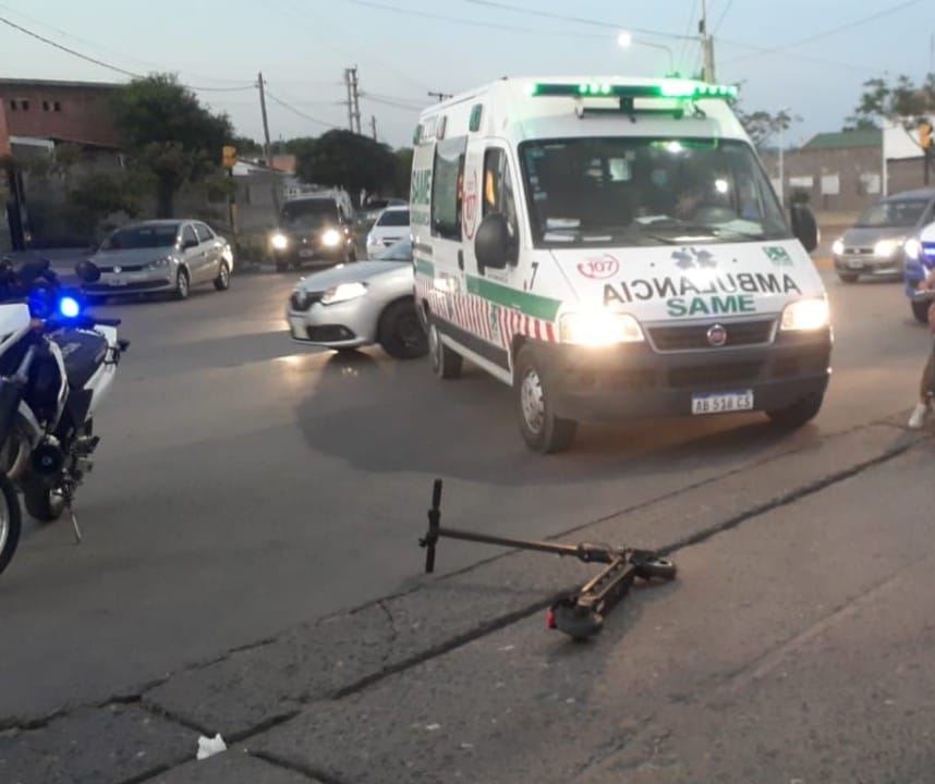 En el lugar, una joven de 18 años identificada como Agustina Nieva protagonizó un curioso accidente cuando conducía -con sentido sur norte- un monopatín a batería marca Fiat 500.