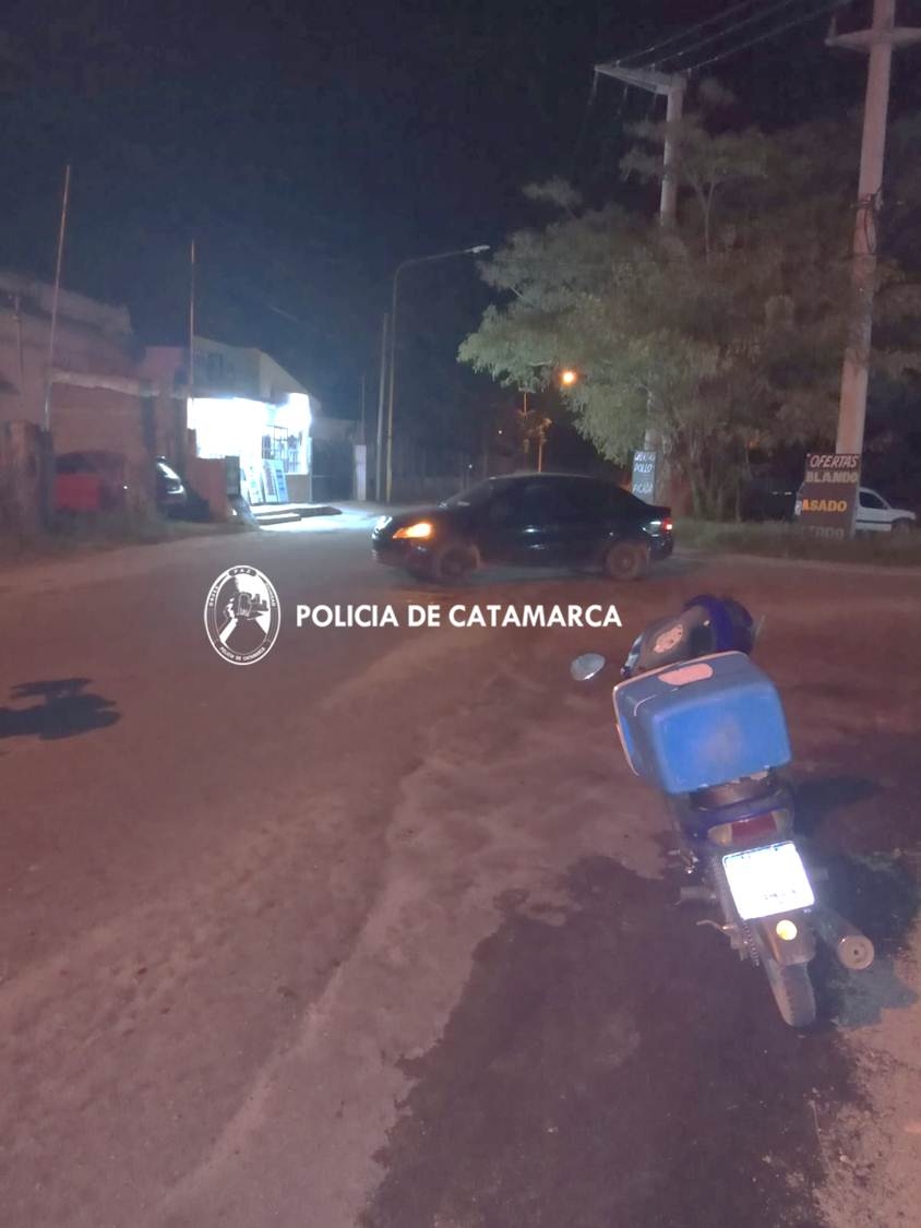 Anoche, a las 22.30, en la esquina de las calles Vicente López y Pérez de Zurita, de la Ciudad de Andalgalá, se produjo un siniestro vial protagonizado por una camioneta Hyundai Tucson, dominio FLE-143, de color gris, al mando de Ernesto Fabio Garcia de Grandi (54), que por causas que se tratan de establecer, colisionó con una motocicleta Honda 110 cc., de color negro, conducida por Sergio Gabriel Villagra (27).