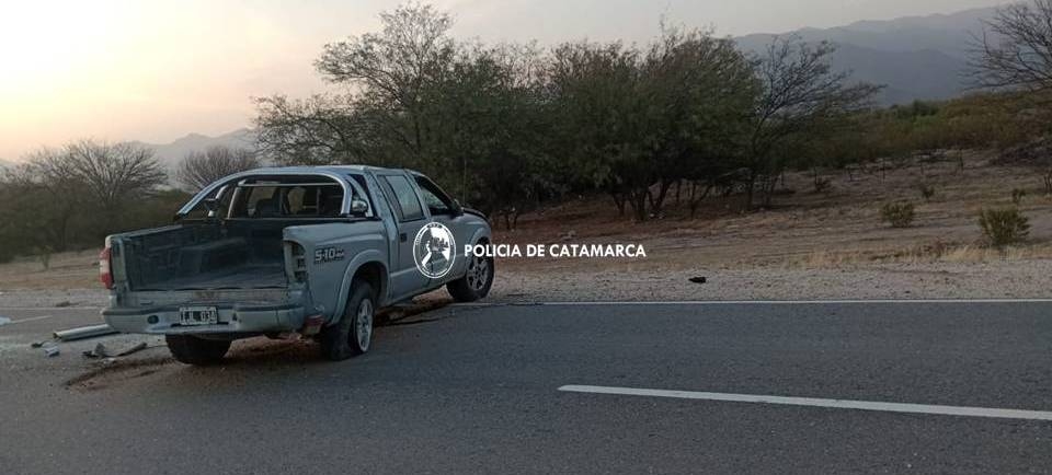 En el lugar, por causas a determinar, el conductor de una camioneta Chevrolet S10 identificado como de Darío Contreras perdió el control del rodado y terminó volcando.