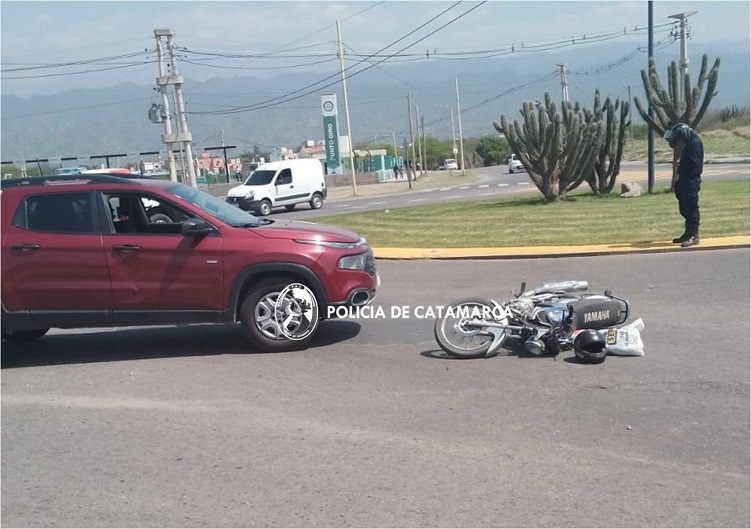 Producto del siniestro, la motociclista sufrió lesiones, que demandaron la asistencia de profesionales médicos del SAME, quienes la trasladaron al Hospital San Juan Bautista.