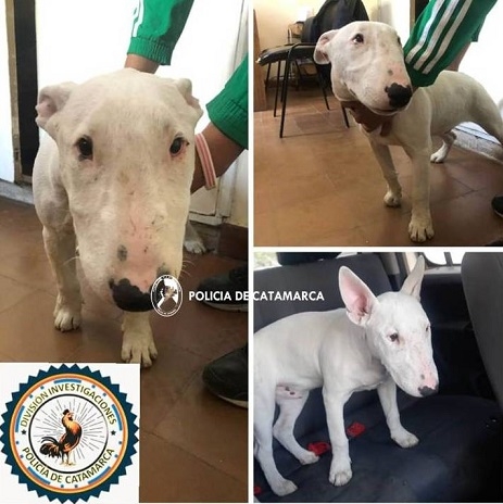 Hoy martes policías llevaron a cabo un registro domiciliario en un inmueble ubicado en la Manzana “S” del barrio Loteo Parque Sur, donde lograron recuperar un can de raza Bull Terrier.