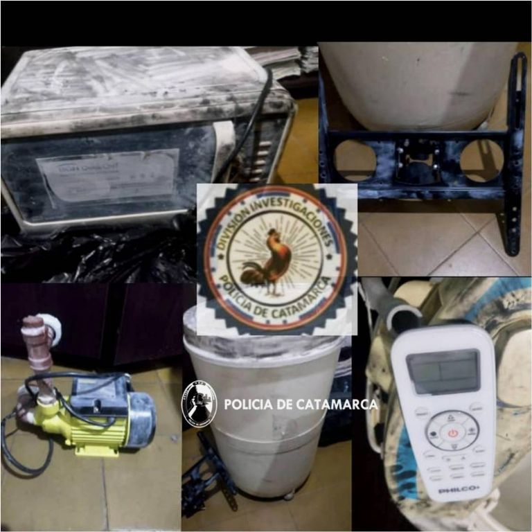 Luego, el personal policial interviniente llevó a cabo un registro domiciliario en una vivienda ubicada en la Avenida José V Figueroa al 60, donde procedió al secuestro de un (01) microondas, una (01) bomba de agua, (01) soporte de pared, un (01) lavarropas semiautomático, y un (01) control de aire acondicionado y por acta paralela incautaron cuatro (04) pizarrones y varias prendas de vestir, de interés para la causa que se investiga.