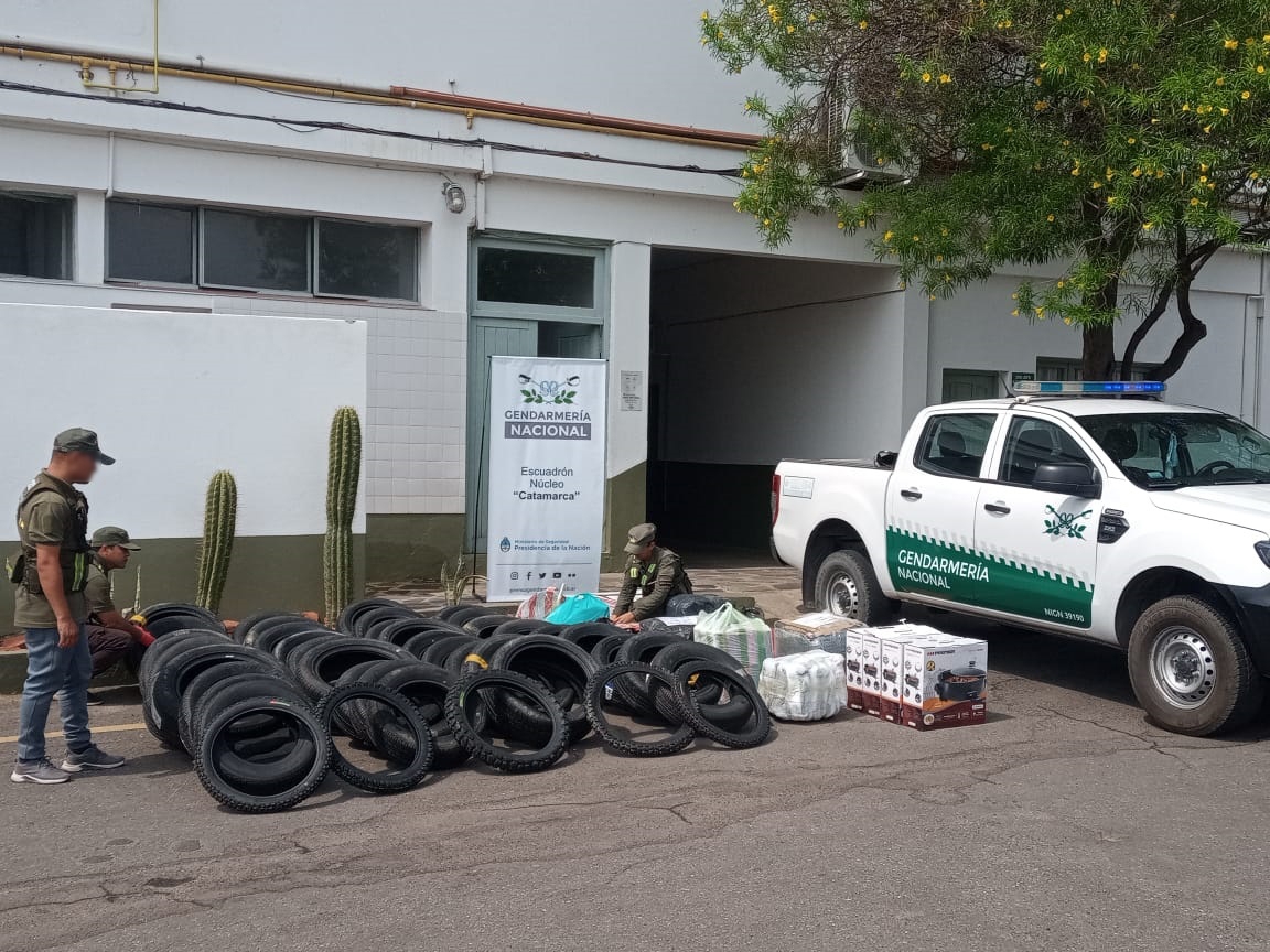 Por otra parte, en Catamarca, personal del Escuadrón Núcleo incautó mercadería del rubro electrónica, bazar y 45 cubiertas.