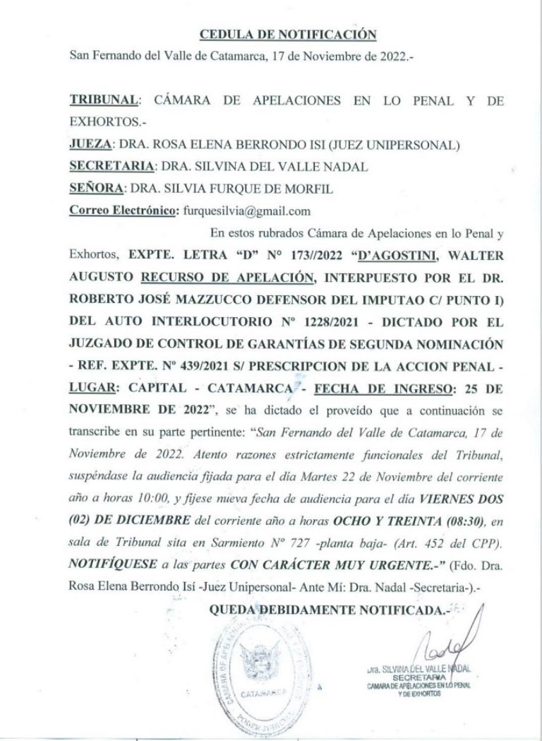 La Cámara Penal y Exhortos citó a indagatoria por estafas reiteradas al empresario Walter D' Agostini para el viernes 2 de diciembre. Luego de postergar 3 veces, el empresario deberá comparecer ante el tribunal que entiende la causa.