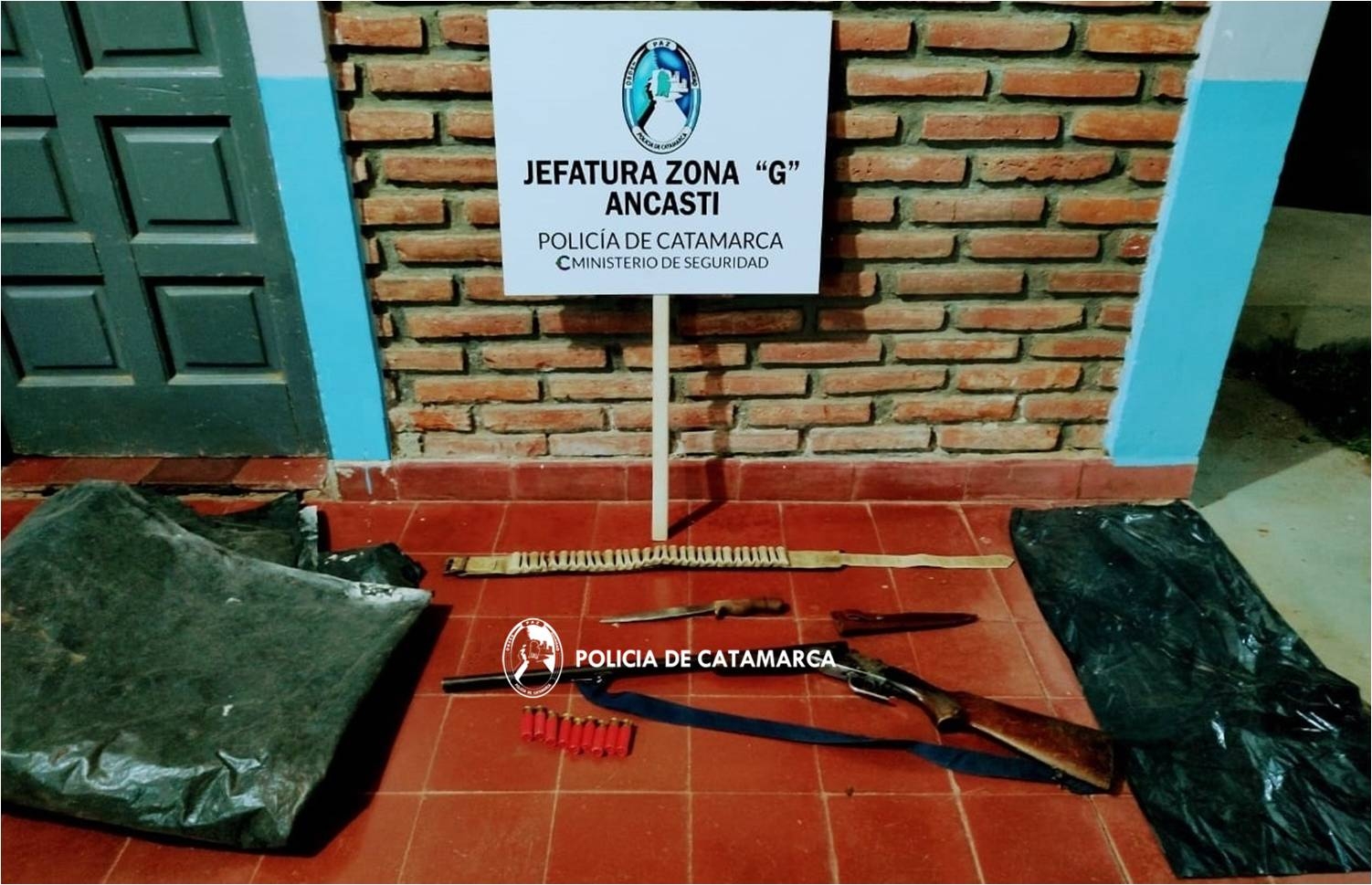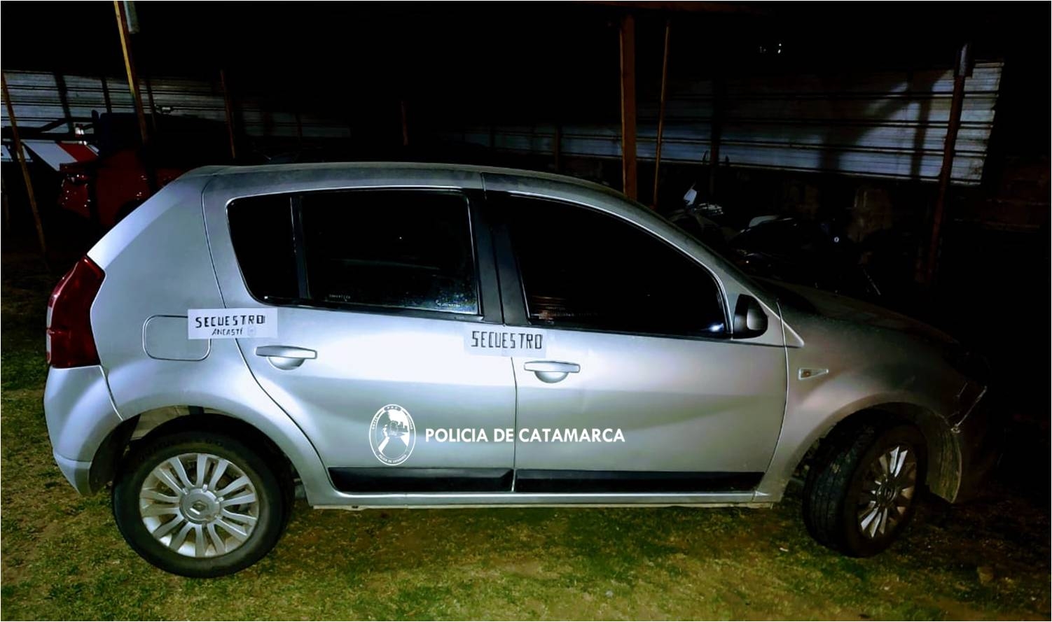 Cabe señalar que, al inspeccionar el rodado, el personal interviniente encontró una (01) escopeta marca Sole, calibre 16 mm., un (01) cinturón porta cartuchos con nueve de ellos, un (01) cuchillo y otros elementos , que fueron utilizados para perpetrar el ilícito y que quedaron en calidad de secuestro.