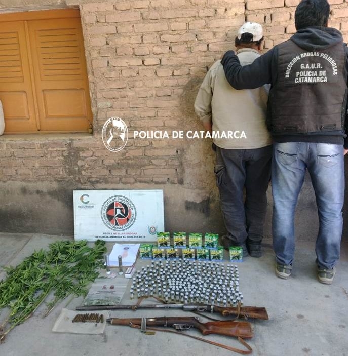 En la tarde de ayer, a las 13:10, como resultado de las tareas de investigación relacionadas a una supuesta infracción a la Ley de Estupefacientes N° 23.737, con conocimiento del Juzgado Federal, a cargo del Dr. Miguel Ángel Contreras, Secretaría a cargo del Dr. Luis Alberto Baracat Marenco, personal del Grupo Antinarcóticos de Unidades Regionales (GAUR- Belén y Santa María) dependiente de la Dirección Drogas Peligrosas de la Policía de la Provincia materializó dos allanamientos en inmuebles ubicados en la calle Juan Pérez de Zurita S/N°, inmediaciones con la Ruta Nacional N°40, de la localidad de Londres, y el restante en el Paraje El Shincal, ambos del Departamento Belén.