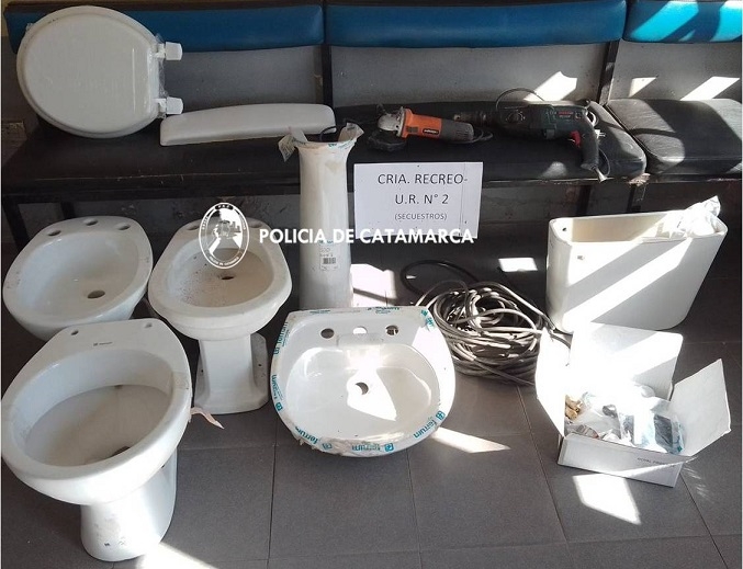 En dicho inmueble, los Policías lograron recuperar un taladro Bosch, una amoladora Gladiator, una pileta de baño marca Ferrum, un Bidet Ferrum, un pie de Ferrum, un inodoro Ferrum con tapa, una mochila de baño Ferrum con tapa, un grifo de pileta con mezclador y llaves, treinta metros de prolongador de corriente, varias llaves y otros elementos que quedaron en calidad de secuestro a disposición de la Justicia interviniente.