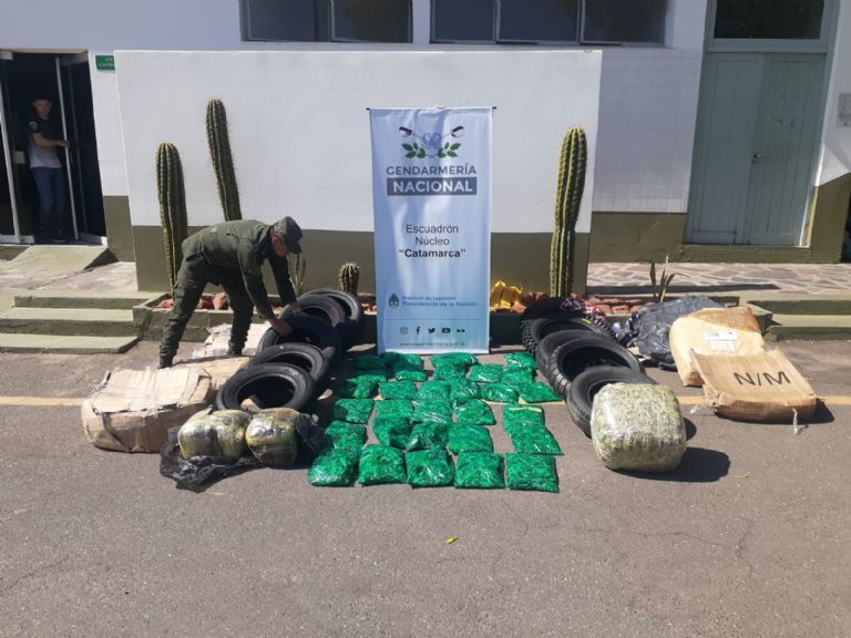 Ayer, el mismo Escuadrón Núcleo, por orientación del Magistrado interviniente procedió a la apertura de 10 encomiendas interdictadas decomisando 19 kilos de hojas de coca y 10 cubiertas de diferentes rodados, el avalúo total asciende a los 935.000 pesos. Todos los elementos quedaron a disposición de AFIP-DGA Tinogasta.