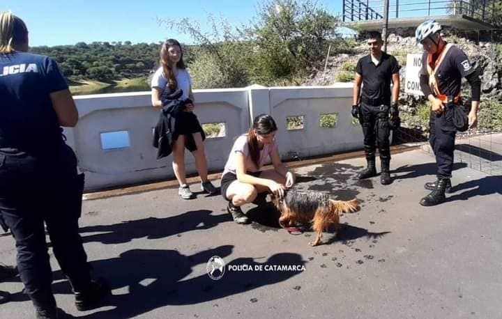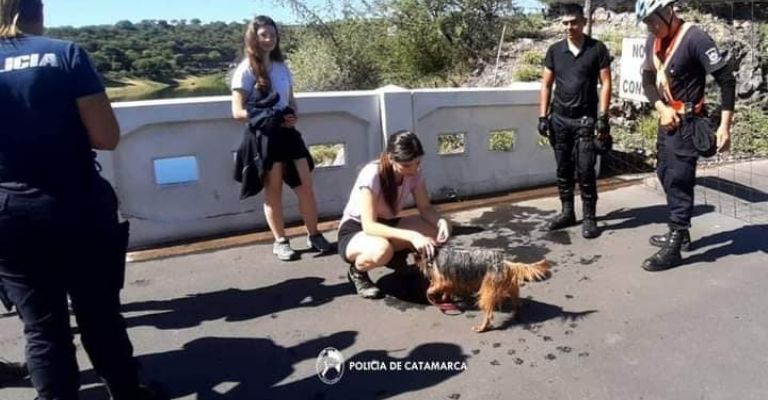 De inmediato, los efectivos lograron rescatar y poner a salvo a la mascota, gesto que fue agradecido por la dueña del animalito.