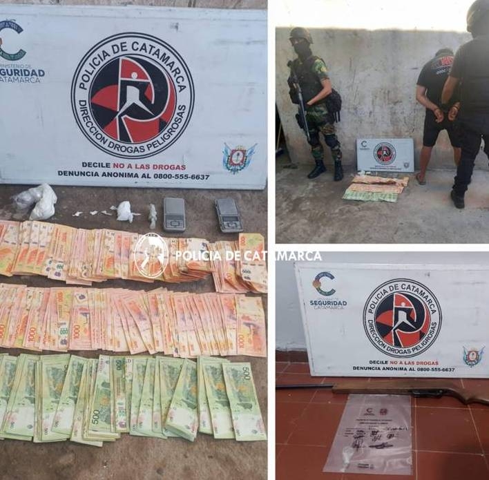 Tras irrumpir en los inmuebles, los policías procedieron al secuestro de: cocaína, marihuana, semillas, una (01) balanza comercial marca Sigma, dos teléfonos celulares, dos (02) balanzas tipo gramera, diecinueve (19) comprimidos de Midazolam, una (01) carabina calibre 22 Bersa, y trescientos cincuenta y ocho mil Cuatrocientos Noventa pesos ($358.490)