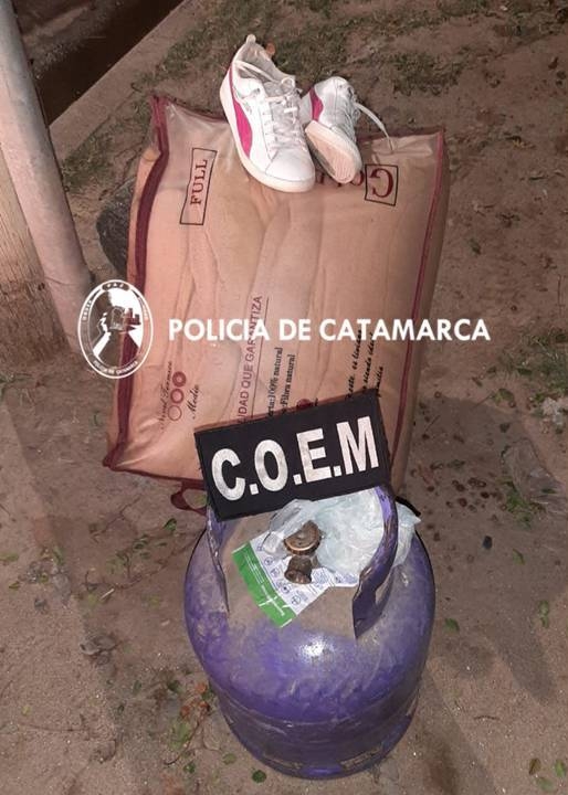 En el lugar, el personal interviniente procedió a la aprehensión de un hombre de apellido Ogas de 27 años de edad, y al secuestro de una (01) garrafa 10kg, un (01) par de zapatillas marca puma, de color blanco y un (01) acolchado.