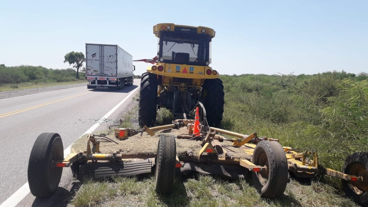 En ese lugar, mientras el operario José Ramón Bazán, realizaba trabajos de desmalezado de banquinas al mando de un tractor Pauny, una piedra fue despedida accidentalmente por la desmalezadora y dañó el parabrisas de un camión de una empresa de transportes con sede en la provincia de Santa Fe.
