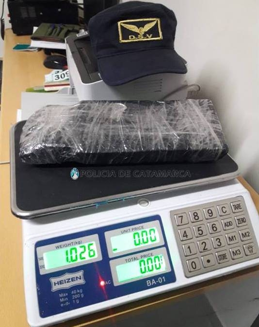 Al inspeccionar el rodado, los policías lograron encontrar en el interior baúl una caja que contenía en su interior un paquete de color negro compactado. Se solicitó la presencia del personal de Gendarmería Nacional Argentina, quienes tras realizar la prueba de campo correspondiente establecieron que se trataría de marihuana, arrojando un peso de 1,026 Kg.