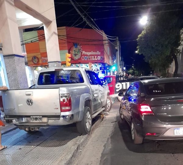 Ante esta situación el conductor optó por subirse a la vereda, y al realizar esta maniobra rozó dos vehículos: un Chevrolet conducido por Juan Jaquet (34 años). y una camioneta Renault Oroch que manejaba Reina Ana Canji (31).El incidente terminó con la camioneta Volkswagen impactando contra un contenedor de residuos.