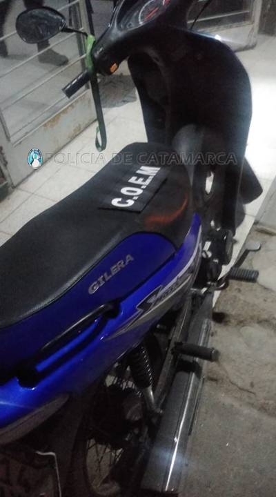 De inmediato, y con las características brindadas por las damnificadas, los policías iniciaron recorridos en la zona y en la manzana “B” del barrio San Antonio Sur, donde lograron interceptar a los autores que fueron identificados como Roldan (20) y Agüero (23), quienes al realizarle la requisa correspondiente se le encontró entre sus pertenencias un teléfono celular que quedó en calidad de secuestro, a fin de asta determinar su legítima procedencia, también se procedió al secuestro de una motocicleta Gilera Smash 110 cc., dominio A145UXK , de color Azul ,que usaron para perpetrar el ilícito.