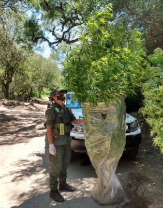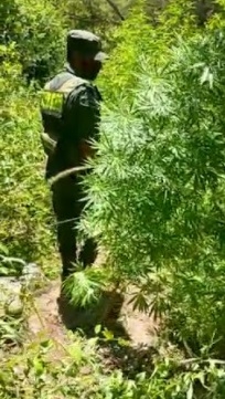 Ante la presencia de testigos, los funcionarios rastrillaron la zona en inmediaciones del Parador 1, a 150 metros cuesta arriba del cerro hallaron una huerta cercada donde había cinco plantas de marihuana, y a metros de ese lugar observaron otras ocho más.