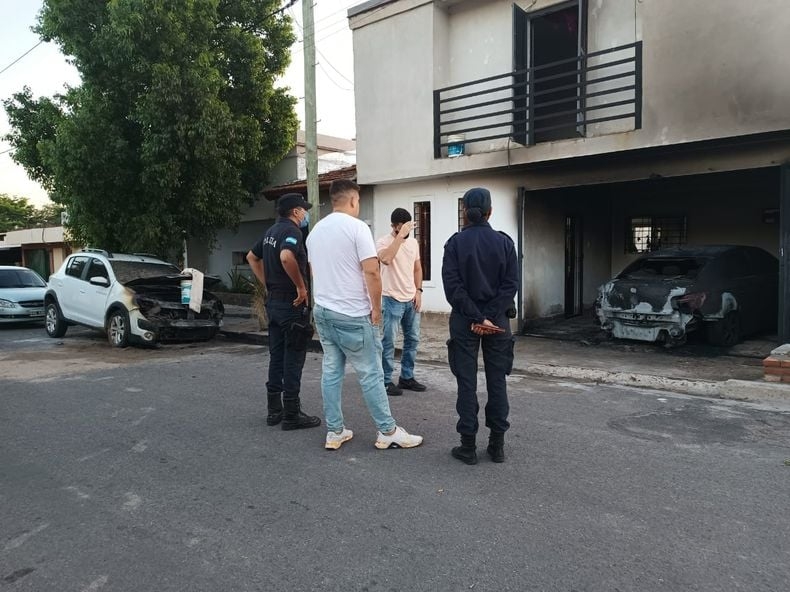 Según un informe policial a las 4:10 de esta madrugada, efectivos policiales de la Comisaría Cuarta, fueron alertados por el SAE 911 sobre el incendio de dos vehículos en Avenida Illía y Río Ongolí, Barrio Los Pinos.