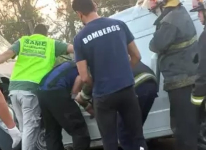 Por lo violento de la colisión, Rueda quedó atrapado en la cabina mientras que los ocupantes del utilitario se encontraban inconscientes.