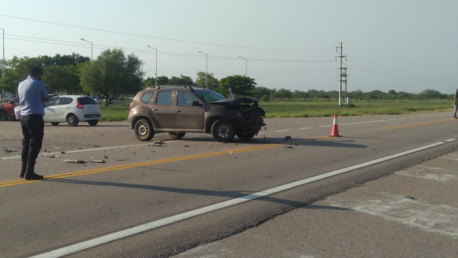 En el lugar, una camioneta Duster, color marrón petróleo, dominio AB-O18-RP, conducida por Dardo Samuel Olivera (párroco del Penal) y de la Parroquia Santa Ana y San Joaquín, quien intentó realizar una maniobra para ingresar al Servicio Penitenciario e impactó en forma frontal con la parte lateral de un Fiat Siena, dominio NGY-851, conducido por Carlos Flores, de 41 años, domiciliado en la ciudad de Belén.