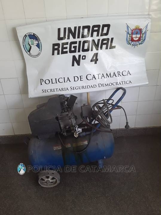 En el lugar, los policías lograron recuperar un compresor marca Robust, de color azul, tamaño mediano, de 50 litros, que quedó en calidad de secuestro a disposición de la Fiscalía de la Segunda Circunscripción Judicial, desde donde se impartieron las medidas a cumplimentar.