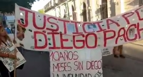 A través de una radio abierta en la Plaza 25 de Mayo, familiares y amigos de Diego Pachao insistieron hoy lunes con el pedido de justicia y condena a los policías involucrados en la causa.