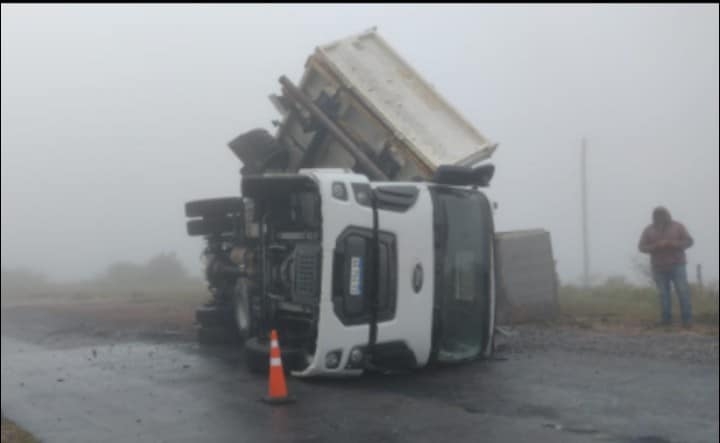En la mañana de este sábado, a las 9:30 a 3 kilómetros de la localidad de El Taco, departameto Ancasti, volcó un camión perteneciente a una empresa constructora, conducido por Rafael Carrizo de 43 años.