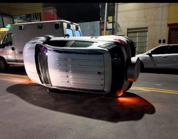 Se trata de una Ford Eco Esport, que colisionó primero contra un Toyota Etios que estaba estacionado, y luego terminó volcando por la violencia de impacto. Al lugar arribó el SAME que atendió al conductor que solo sufrió golpes menores.