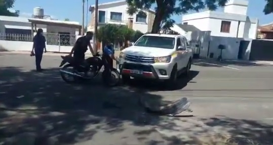 En horas de la mañana de este martes, en Avenida Presidente Castillo y calle Robin Correa, en Villa Parque Chacabuco, una camioneta chocó contra una moto en la que se conducían dos mujeres policías.