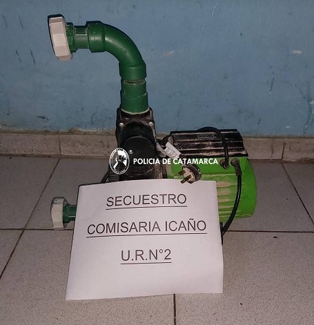 Por su parte, una mujer manifestó que desconocidos sustrajeron del interior de la Escuela N° 35 de esa localidad, del Departamento La Paz, una bomba de agua 1 Hp, de color verde y negro.
