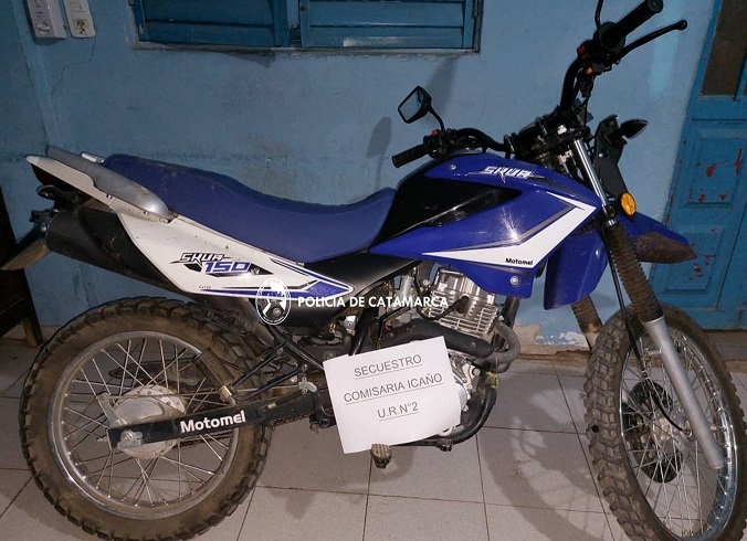 Un hombre domiciliado en Icaño denunció que personas desconocidas ingresaron a su domicilio y le sustrajeron una motocicleta Motomel Skua 150 cc., de colores azul y blanco.
