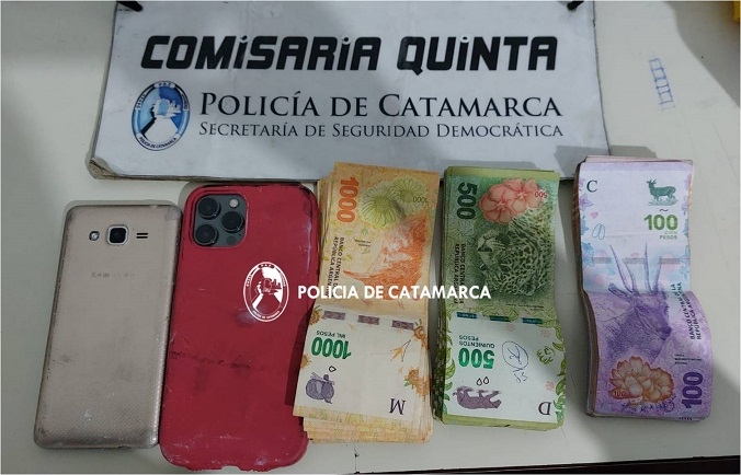 Los sujetos también llevaban dos bolsos, que contenía un teléfono celular Samsung J2 Prime dorado, con su respectivo cargador, que fue incautado al igual que la suma de $29.600, una remera de color amarillo marca Lacoste la cual habría sido utilizada durante el ilícito y otros elementos.