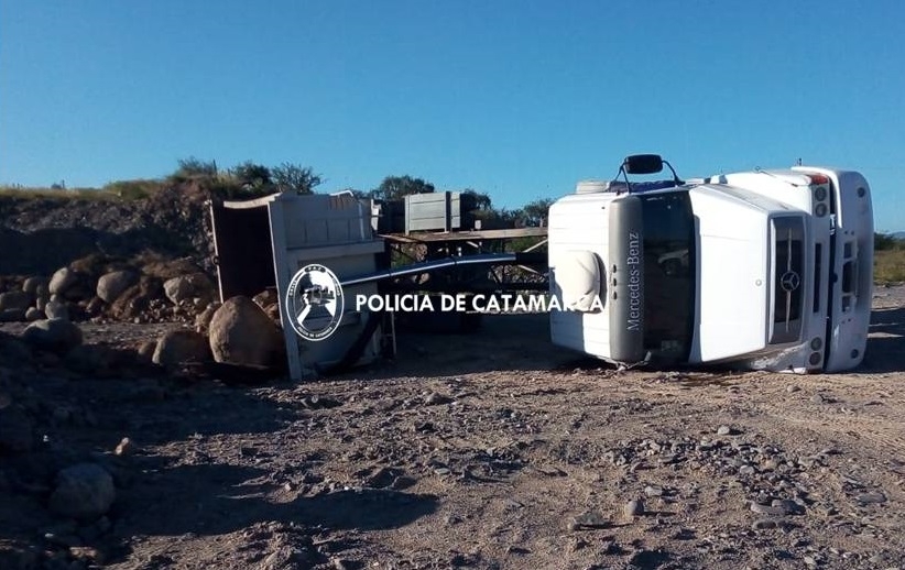En el lugar, los Policías entrevistaron al conductor, un hombre identificado como Jorge Antonio Páez (44), quien manifestó que mientras intentaba salir, luego de realizar la carga con piedras de gran porte, el vehículo volcó.