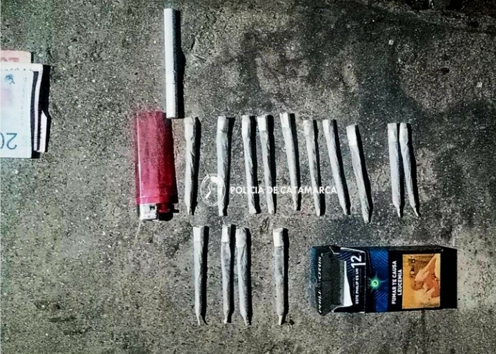 Cabe mencionar, que tras realizar la requisa personal correspondiente, los Policías encontraron entre las pertenencias un teléfono Celular marca LG, de color negro, la suma de $520 pesos en efectivo y treinta y cuatro (34) cigarrillos de armado casero, conteniendo una sustancia tipo herbácea, que quedaron en calidad de secuestro, por lo que solicitaron la presencia de sus pares de la Dirección Drogas Peligrosas de la Policía de la Provincia, los cuales al ser sometidos a la prueba de campo correspondiente arrojó que se trataría de Marihuana, por lo que de inmediato se dio participación al Juzgado Federal, desde donde se indicaron las medidas a seguir.