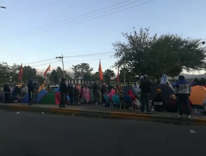 Organizaciones sociales y grupos de izquierda desplegaron carpas frente a la sede del Poder Ejecutivo en reclamo de viviendas, fuentes de trabajo e incremento en los montos de los planes sociales.