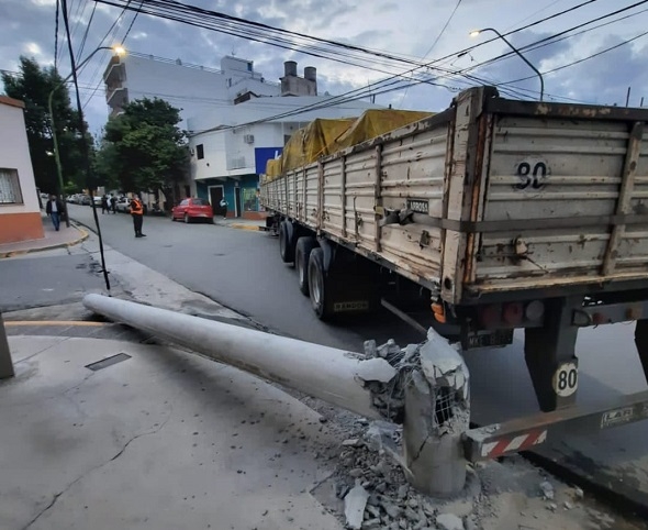 miércoles, 13 de abril de 2022 20:45 miércoles, 13 de abril de 2022 20:45 El Camión volteó la columna en ka esquina de Vicario Segura y Mota Botello. Por el incidente, un sector del Centro sufrió un corte de luz, hasta que fue alimentado por otras líneas que llegan al centro.