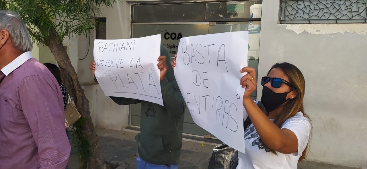 Enfurecidos marcharon hasta el nosocomio y cortaron la calle. Exigen respuestas del trader que les prometió intereses del 20 por ciento de sus inversiones y no les pagó.