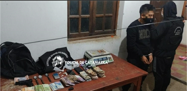 En la madrugada de hoy, a las 03:20, como resultado de las tareas de investigación relacionadas a una supuesta infracción a la Ley de Estupefacientes N° 23.737, con conocimiento del Juzgado Federal, efectivos del Grupo Antinarcóticos de Unidades Regionales Nº 4 (GAUR Andalgalá), N° 3 (GAUR Belén) y División Canes, dependientes de la Dirección Drogas Peligrosas de la Policía de la Provincia, con colaboración de sus pares de la Comisaría Departamental Andalgalá, materializaron una orden de allanamiento en una vivienda ubicada en calle Hipólito Yrigoyen S/N°, de la Ciudad de Andalgalá, Departamento homónimo.
