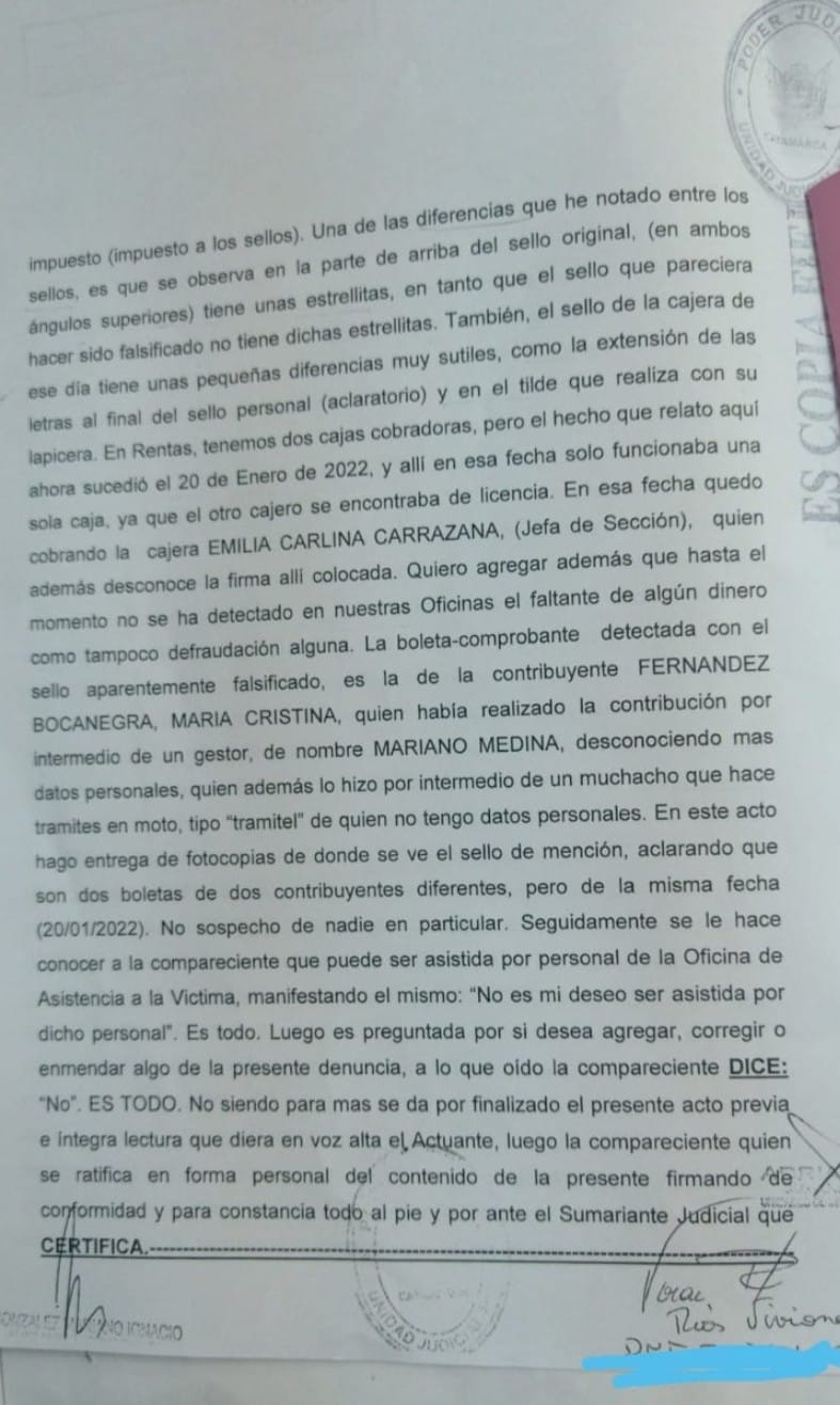 El hecho saltó a la luz cuando se detectó que en dos comprobantes de pagos efectuados por dos contribuyentes, los sellos no eran similares que se utilizan de manera oficial.