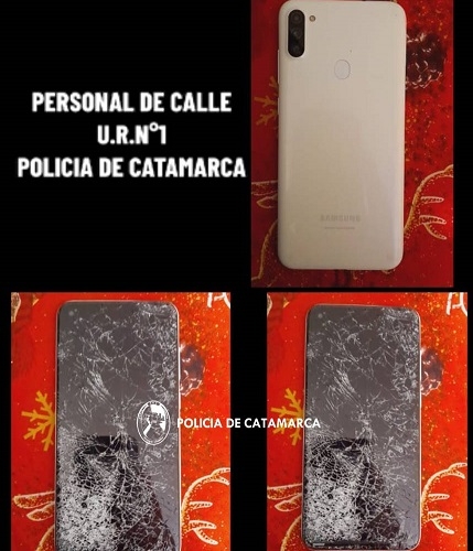 Durante la persecución, esta persona arrojó un teléfono celular Samsung A-11, de color blanco, que quedó en calidad de secuestro.