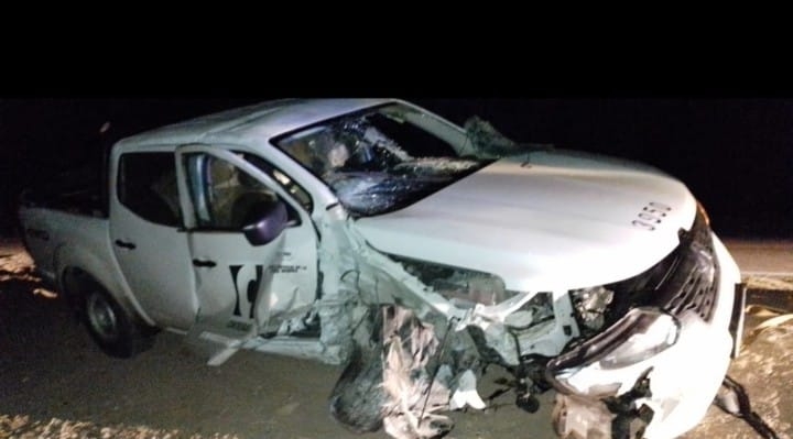 Un accidente ocurrió hoy sábado en Ruta Nacional 40 a la altura del kilómetro 4065, en el ingreso a la localidad de La Aguada, donde una camioneta chocó contra una alcantarilla luego de que el conductor intentó esquivar animales sueltos en el camino.
