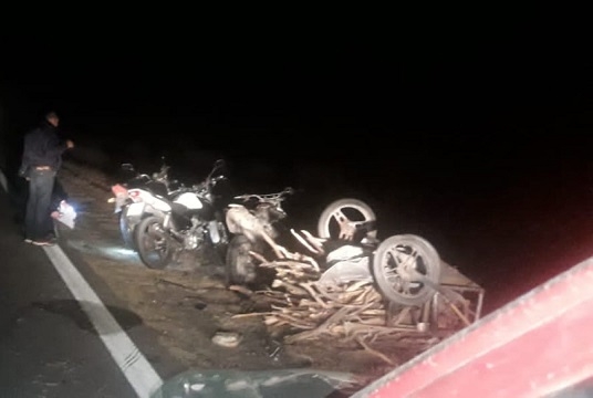 Según se supo, a uno de los rodados se le habría desprendido un carro con leña que llevaba tirando, y fue a dar contra dos motos que venían detrás.