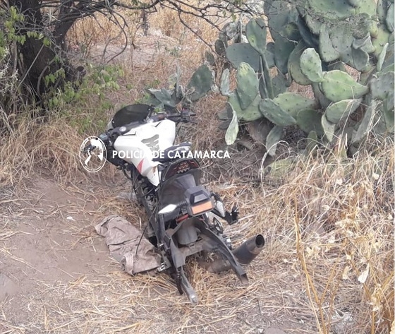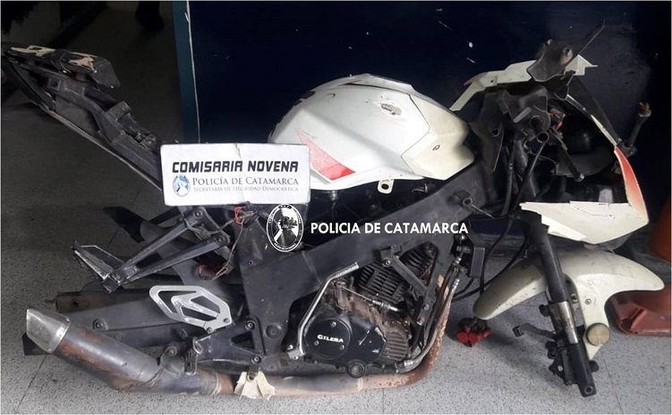 Al llegar al lugar, los policías se entrevistaron con un joven de 21 años, quien les manifestó que a la par de la canchita dentro del descampado, estaría su motocicleta Gilera 200c.c., de color blanco (sin sus ruedas y asiento) y que la misma había sido denunciada como sustraída.