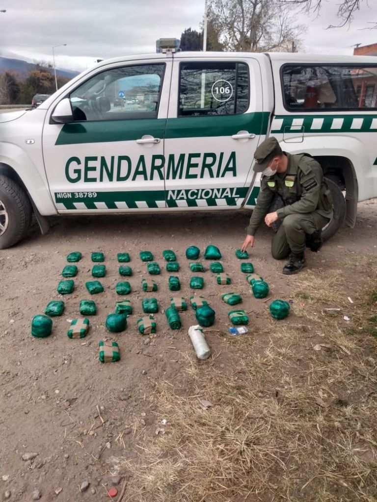 Continuando con el control, los gendarmes detectaron que la ciudadana involucrada también transportaba en su mochila 42 paquetes con hojas de coca, un total de 10 kilos se decomisó.