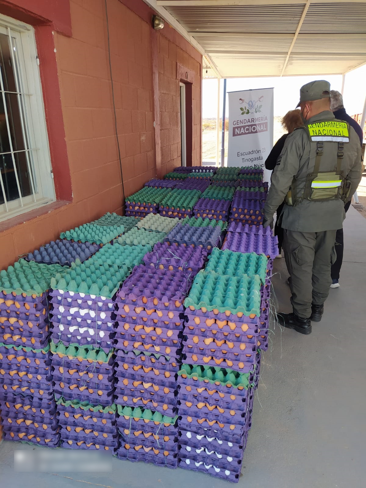 Durante la inspección, los gendarmes detectaron que el camión llevaba 792 maples de huevo, los cuales carecían de sus correspondientes rótulos y fecha de vencimiento. Ante la falta de documentación obligatoria, y en comunicación con la Delegación local de SENASA, se procedió a secuestrar la totalidad de la mercadería (23.760 huevos) y se labraron las actuaciones en infracción al Decreto Ley Nro. 4.238/68 Capitulo 27 Inc. 27.1 de la resolución SENASA Nro 552/02.