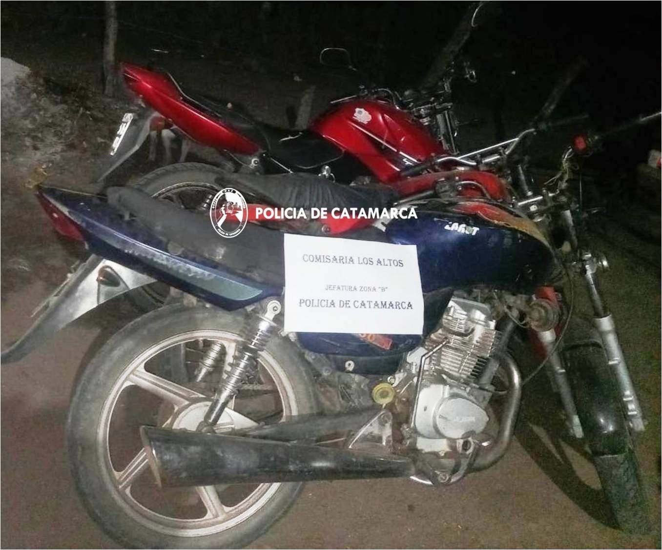Durante la tarde del pasado viernes, personal de calle de la Comisaría de Los Altos se hizo presente en el Paraje Las Talitas, hacia el norte de esa localidad del Departamento Santa Rosa, y procedió a la aprehensión de cinco masculinos de 30, 35, 51, 66, todos de apellidos Díaz, y uno de apellido Albornoz (42), quienes circulaban en tres motocicletas; una Keller 150 cc., de color rojo, una Mondial azul 110 cc., y una Yamaha YBR 125 cc., de color rojo.