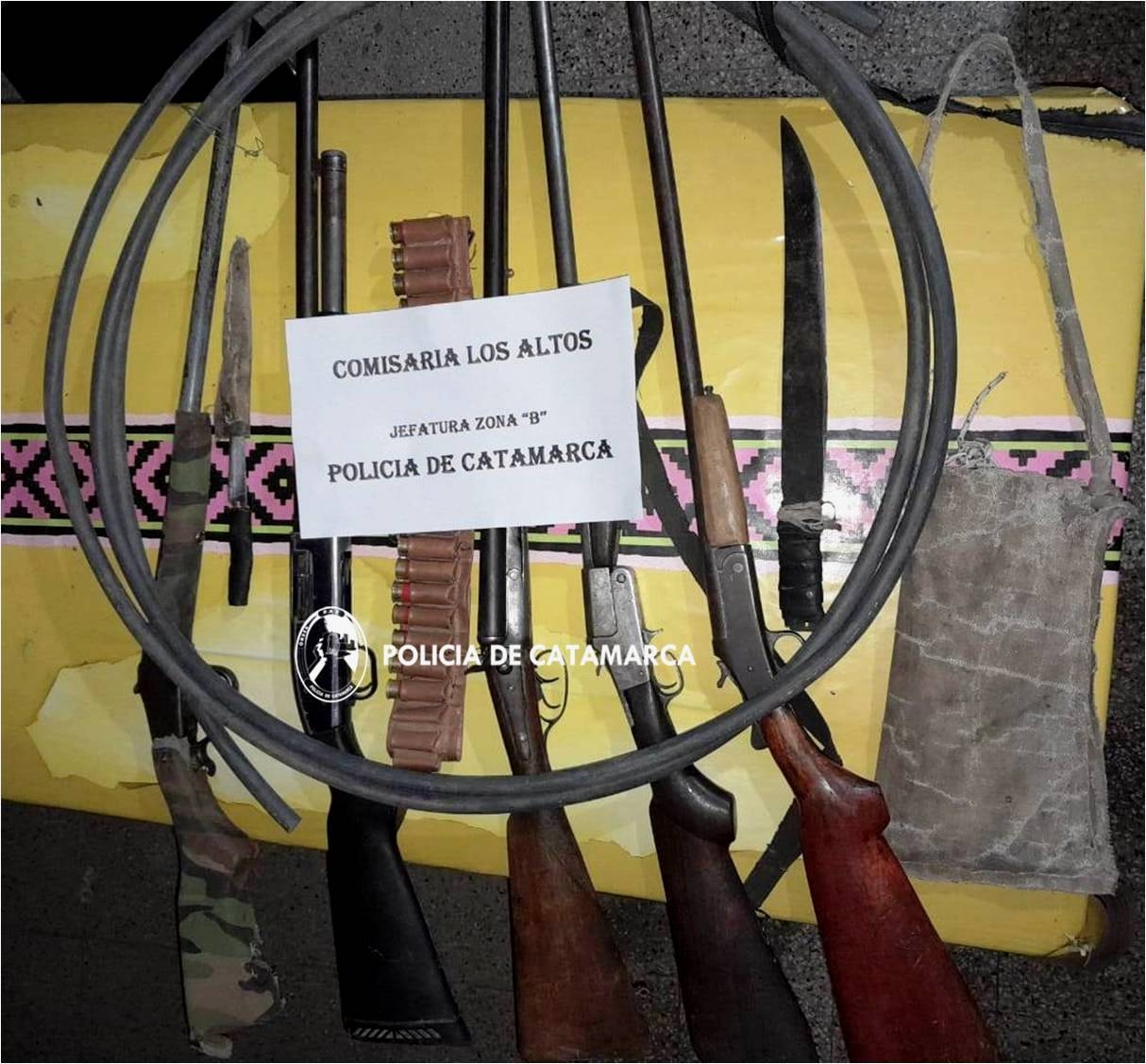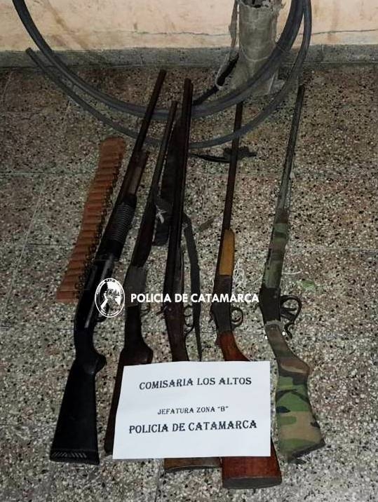 Cabe señalar que, estás personas tenían en su poder cinco (05) escopetas de distintas marcas y calibres, que quedaron en calidad de secuestro al igual que cartuchos de diferentes calibres, un (01) sable, un (01) cuchillo, una (01) manguera de plástico de unos 6 Mts., y un (01) morral.
