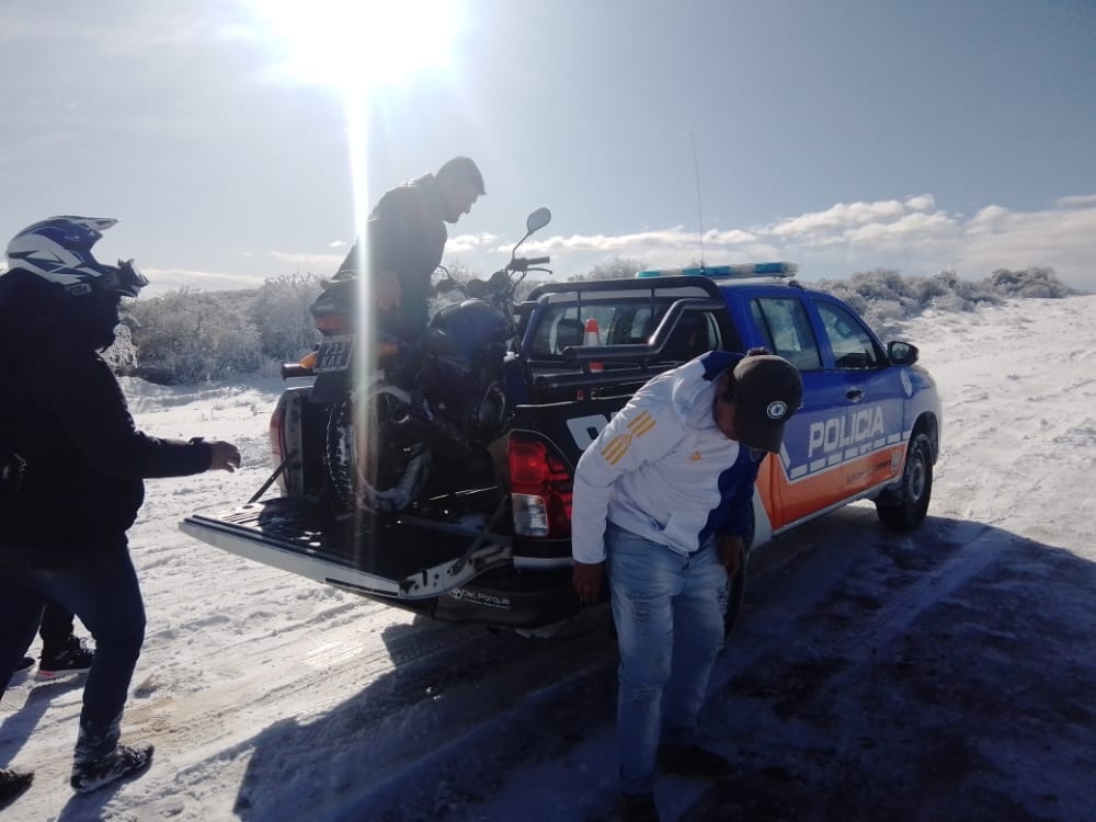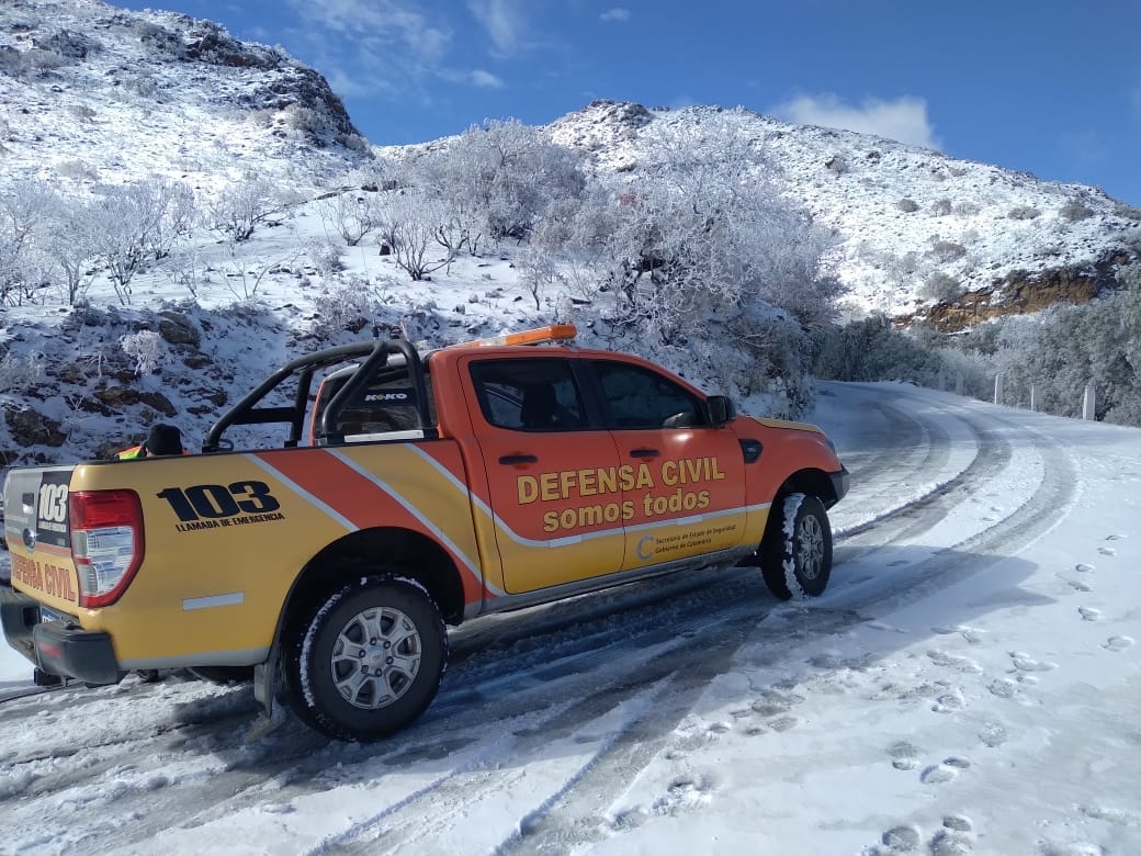 Desde muy temprano, personal la Comisaría Departamental Ancasti, realizó rescate de personas en la Cuesta de Los Morteros, en el departamento Ancasti, debido a la intensa nevada y acumulación de nieve en la calzada.