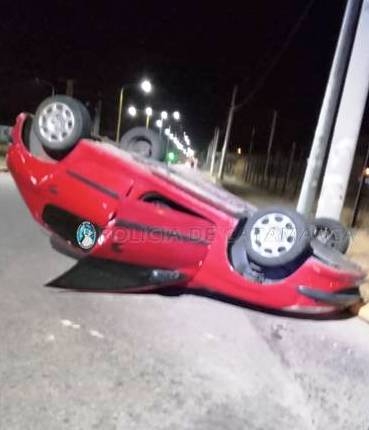 Carlos Nazareno Pavón (20) quien circulaba en un automóvil Peugeot 206 dominio JVT943, de color rojo, en compañía de un adolescente de 15 años, y por razones que se tratan de establecer perdió el control del rodado y terminó volcando sobre la calzada, lo que solo causó daños materiales en el vehículo.