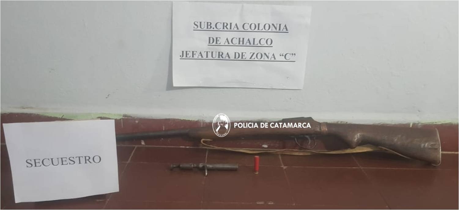 A raíz de una denuncia penal radicada en la Subcomisaría de Achalco, en la que un joven de 21 años de edad manifestó que habría protagonizado una discusión con otro masculino, el cual esgrimió un arma de fuego para luego apuntarle con la misma, amenazándolo de muerte, tras averiguaciones practicadas, a las 14:35 de la tarde de ayer, el personal policial interviniente materializó un registro domiciliario ordenado por la Fiscalía de Instrucción en feria, a cargo del Dr. Alejandro Agustín Gober.