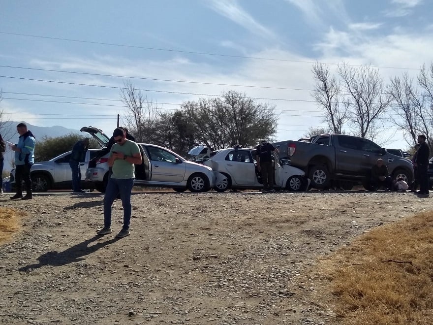 En el lugar, los uniformados lograron establecer que el hecho fue protagonizado por automóvil Peugeot 207, de color gris, dominio AA563KN, al mando de Mario Rubén Tello (70), acompañado por María Luciana Tello (24), Santiago Lescano (24) y Silvia del Valle Romero (69), todos oriundos de la Provincia de La Rioja y por causas que son materia de investigación, colisionó en la parte trasera a un automóvil Toyota Etios blanco, domino AB412UA, conducido por Miguel Angel Carrizo (58), en compañía de Pablo Néstor Frayssine (59), André Frayssine (13) y María Cristina Cipolla (52), estos últimos tres oriundos de la Provincia de Buenos Aires, quien tras el impacto chocó con la parte posterior de una camioneta Ford Ranger, dominio PAF862, de color gris, en la que circulaba Rubén Victor Peña (64), quién iba acompañado por Juan Domingo Cabrera Peña (55), María Victoria Peña (32) y dos niños menores de edad. Así mismo, este último vehículo chocó con un automóvil Fiat Argo Negro, dominio AC288AK, conducido por Mónica Delgado (52) oriunda de la Provincia de San Juan, quién detuvo la marcha del rodado al llegar a un puesto de control vehicular.